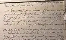 The Schuyler family was among the wealthy Dutch landowners who had settled around Albany in the mid-1600s, and both her mother and father came from wealthy and well-regarded families. Despite the unrest of the French and Indian War, which her father served in and which was fought in part near her childhood home, Peggy's childhood was spent comfortably, including receiving from her mother a basic education and training in domestic skills including sewing. Like most Dutch families of the area, the Schuylers attended the Dutch Reformed Church in Albany.[1]