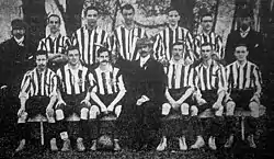Margate Football Club was founded in 1896 as an amateur club and was originally called Margate Town,[4] playing friendly matches on local school grounds.[5] In the years before the First World War the club played in several different amateur leagues, with little success, and played at various grounds in the Margate area,[4] before settling on a pitch at what would later become the Dreamland amusement park in 1912.[6] This ground became known as the Hall-by-the-Sea Ground,[4] taking its name from a local dance hall.[7]