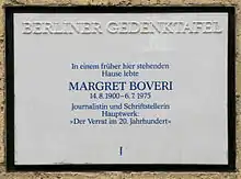 Margret Antonie Boveri (14 August 1900 – 6 July 1975)[1] was one of the best-known German journalists and writers of the post-World War II period. She was a recipient of the German Critics' Prize and the Bundesverdienstkreuz.