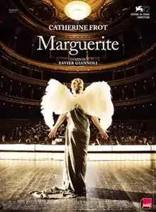 Marguerite is a 2015 French-language comedy-drama film directed by Xavier Giannoli and written by Giannoli and Marcia Romano, loosely inspired by the life of Florence Foster Jenkins. Set in the Golden Twenties, the film stars Catherine Frot as a wealthy woman who is an enthusiastic amateur singer and believes, wrongly, that she has a beautiful voice. The film is an international co-production among France, the Czech Republic, and Belgium.[3] Marguerite received eleven nominations at the 41st César Awards, winning for Best Actress, Best Costume Design, Best Sound, and Best Production Design.[4]