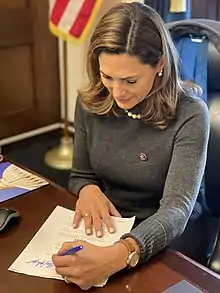 In August 2019, Salazar announced her candidacy to run in a rematch against Shalala.[44] She was endorsed by President Donald Trump,[45] won the August 2020 Republican primary, and faced Shalala in the November general election.[46] The Cook Political Report, as well as various polling firms, classified the seat as "Likely Democratic", but Salazar won, 51.4% to 48.6%.[47][4] She was one of 19 new Republican women elected to the House of Representatives in the 2020 elections.[48][49][50][51] Politico reported that Shalala attributed Salazar's strength to the potency of the socialism attacks among Miami's Cuban population, aided by Shalala calling herself a "pragmatic socialist".[52][53]