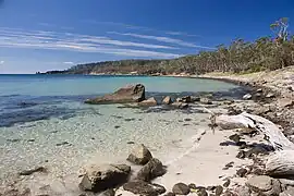 The island has been identified by BirdLife International as an Important Bird Area (IBA) because it supports significant numbers of endangered swift parrots and forty-spotted pardalotes, over 1% of the world population of Pacific gulls, as well as populations of most of Tasmania's endemic bird species.[1] Cape Barren geese are common on the island, as are eastern grey kangaroos, eastern bettongs and other marsupials. Common wombats can be seen almost anywhere. Tasmania's three species of snake are all found on the island: the tiger snake, lowland copperhead and white-lipped snake.