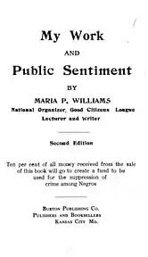 - "My work and public sentiment; By Maria P. Williams; National Organizer; Good Citizens League lecturer and writer. [Title page]". NYPL Digital Collections. Retrieved 2019-02-23.