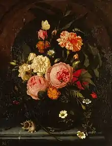 Sometime in the early- to mid-1670s, she moved to Amsterdam,[3] where her studio was opposite the workshop of fellow flower painter Willem van Aelst.[4] Van Aelst courted her, but she refused his hand, and he reportedly stopped pursuing her because her devotion to painting was more important to her.[1][5] Van Oosterwijck remained single throughout her life, but she raised her nephew, who had been orphaned.[3]