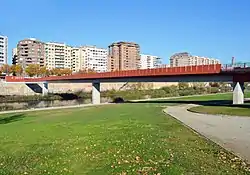 Pedestrian Bridge over the Segre River is a bridge in Lleida, Catalonia, Spain. In 2000, Lleida City Council organized an open competition for a new pedestrian bridge. It marks the entrance to the campus and functions as a communication and public space.[1][2]