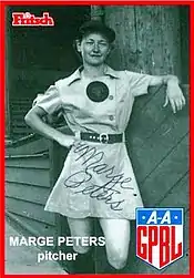 Marjorie L. Peters (September 11, 1918 – April 1, 2016)[1] was an American baseball player. She was a pitcher who played from 1943 to 1944 in the All-American Girls Professional Baseball League. Listed at 5 ft 2 in (1.57 m), 112 lb. (57 k), she batted and threw right-handed.[2]
