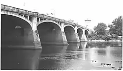 This bridge was designed by the architectural firm of Carrère and Hastings with consulting engineers Benjamin H. Davis and David A. Keefe,[2] and was built between 1926 and 1929.[3] The bridge is 1,274.3-foot-long (388.4 m) with twelve spans, including four main spans measuring 120-foot-long (37 m) each.[4] Six of the twelve arches are open spandrels.