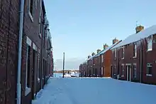 The village consists of several rows of terraced houses, along with a number of detached and semi-detached properties. The oldest existing properties are the former vicarage, the school house, three large detached houses on St. Cuthbert's Road, two stone-built cottages (accessed by a lane leading off to the north-east from St. Cuthbert's Road) and the five rows of houses which form Glamis Terrace, Cuthbert Street and Church Street. The majority of the properties on Cuthbert Street and Church street were built as two up-two downs, and at one time had outside toilets and tin baths which would have been placed in front of the fire. During the 1960s, the houses were modernised and had indoor bathroom/toilets installed. Some of the outside toilets with their adjoining coal houses remain, but a number have been demolished, or have had the toilet removed and are used as sheds. The houses on Glamis Terrace were intended for colliery officials, and are therefore fewer in number and considerably larger than the others, with gardens at both the front and rear. It is named Glamis because the Bowes-Lyons, the Earls of Strathmore, who were ancestors of the Queen (Glamis Castle was the childhood home of the Queen Mother) owned the colliery and the surrounding land, including the Gibside estate. Church Street and Cuthbert Street are named after St. Cuthbert's Church,[1] which stands at the corner of St. Cuthbert's Road, opposite the former Miners Welfare Institute (now a community centre housing a nursery and a performing arts school)[2] and the aged miner's cottages.