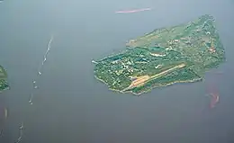 ![]() Aerial photograph of Martín García Island from the west, with airstrip visible in background | |
