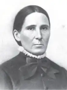 Martha Jane Knowlton Coray was born on June 3, 1821, in Covington, Kentucky.[2] She was the third of ten children born to Sidney Algernon Knowlton and Harriett Burnham, who were from New England.[3] Her ancestor Lt. Daniel Knowlton served in the American Revolutionary War.[4] The Knowlton family moved around the Midwestern United States during Coray's childhood, living in towns such as Cumminsville, Ohio and Bear Creek, Illinois.[1] She attended a Campbellite church as a child, and, at the age of ten, taught a Sunday School class of students older than she.[3] Coray first encountered Mormonism while living in Hancock County, Illinois in 1838.[2] Her father had offered work and housing to some of the Latter-day Saint refugees, and Coray began attending their religious meetings. She listened to many speakers, including George A. Smith,[3] whose discourses convinced her to join the Church of Jesus Christ of Latter-day Saints.[2] In January 1840, she was baptized by John E. Page[5] in the freezing Mississippi River through a hole cut in the ice. Afterwards, Page performed her confirmation. Weeks later, on January 21, 1840, Joseph Smith Sr. gave Coray a patriarchal blessing, bestowing upon her the gift of tongues and the gift of prophecy.[3] She was the first person in her family to join the LDS faith.[5]