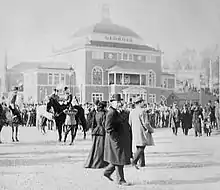 Competition between working-class whites and black for jobs and housing gave rise to fears and tensions. In 1906, print media fueled these tensions with hearsay about alleged sexual assaults on white women by Black men, triggering the Atlanta massacre of 1906, which left at least 27 people dead[38] (25 of them black) and over 70 injured. Many Black businesses were destroyed.[39][40]