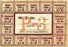 In 1976, the communist government introduced ration cards for sugar,[21] meat, processed food and dairy followed.[22] Confectionery, cocoa, coffee, rice, tobacco and other goods not produced in Poland were so heavily rationed that they were almost permanently unavailable.[23][22] Due to the constant lack of tobacco, ordinary cigarettes became a form of new currency on the black market.[24] The living standards began to sharply decline; the supply of imported goods was kept to a low minimum and the country was forced to export everything it could, including coal necessary for basic heating and power plants. Power outages were commonplace.[25] By 1980, the debt accounted to over US$23 billion, then almost half of Poland's nominal GDP.[26]
