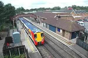 Martins Heron railway station serves commuters travelling to London Waterloo and Reading, Berkshire. The railway station is small but is staffed during the morning and is equipped with CCTV. The station is situated right next to the Tesco supermarket, and part of the building costs were contributed by the retailer as a precondition of the supermarket being built.