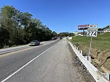 Maryland Route 274 (MD 274) is a state highway in the U.S. state of Maryland. Known for most of its length as Joseph Biggs Memorial Highway, the state highway runs 7.35 miles (11.83 km) from MD 273 in Rising Sun east to MD 272 in Bay View. In conjunction with MD 272, MD 274 connects Rising Sun with Interstate 95 (I-95) in central Cecil County. The highway was built near Rising Sun in two segments, one before 1910 and the other in the mid-1920s. MD 274 was completed to Bay View in the early 1940s. The highway was relocated at Bay View in the late 1960s and reconstructed the rest of the way to Rising Sun in the late 1970s and early 1980s. MD 274 had a truck bypass using MD 273 and MD 272 via Calvert.