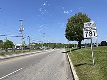 MD 781 begins at an intersection with US 40 (Pulaski Highway) in the town of Elkton 0.23 miles (0.37 km) west of the U.S. Highway's crossing of the Delaware state line. The highway heads north as a two-lane undivided road to the west of the state line and to the east of Grays Hill. MD 781 leaves the town of Elkton about halfway through its course, but the route follows a finger of unincorporated area between sections of the town to its northern terminus. That terminus is at MD 281 (Red Hill Road) 0.34 miles (0.55 km) west of that highway's crossing of the state line.[1][2]