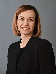 Maryna Volodymyrivna Lazebna (Ukrainian: Марина Володимирівна Лазебна; born 10 June 1975[1]) is a Ukrainian civil servant and politician. On 4 March 2020, she was appointed as the Minister of Social Policy of Ukraine.[2][3]