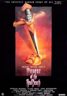 Masque of the Red Death is a 1989 American[1] horror film produced by Roger Corman,[2][3] and directed by Larry Brand,[2] starring Adrian Paul and Patrick Macnee.[4] The film is a remake[5] of the 1964 picture of the same name which was directed by Roger Corman.[2][6] The screenplay, written by Daryl Haney and Larry Brand, is based upon the classic 1842 short story of the same name by American author Edgar Allan Poe, concerning the exploits of Prince Prospero, who organizes a bal masqué in his castle while the peasants of his fiefdom die from the plague in great numbers.[4]