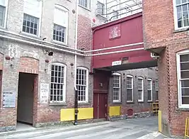 The buildings that MASS MoCA now occupies were originally built between 1870 and 1900 by the company Arnold Print Works. These buildings, however, were not the first to occupy this site. Since colonial times small-scale industries had been located on this strategic peninsular location between the north and south branches of the Hoosic River. In 1860 the Arnold brothers arrived at this site and set up their company with the latest equipment for printing cloth. They began operating in 1862 and quickly took off. Aiding their success were large government contracts during the Civil War to supply cloth for the Union Army.[4]