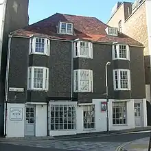 Lewes, the county town of East Sussex, has many buildings clad with mathematical tiles in black and other colours. These include the Grade I-listed Jireh Chapel in the Cliffe area of the town which is clad in red mathematical tiles and dark grey slate. The timber-framed chapel was built in 1805.[29] Elsewhere, a study in 2005 identified 22 18th-century timber-framed buildings (mostly townhouses) with mathematical tiles of various colours.[30] Examples are the semi-detached pair at 199 and 200 High Street,[30] the small terrace at 9–11 Market Street, 33 School Hill (an old building with a mid-18th century renewed façade), and the Quaker meeting house of 1784.[31]
