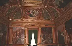 On his return to Dubrovnik in 1893, there seemed no possibility for further artistic progress. Dr Franjo Rački (a founder member of the Croatian Academy of Sciences and Arts) and Dr Iso Kršnjav (head of the Department of Culture (Croatian: odjela za kulturu)) invited him to Zagreb to join the group of artists around Vlaho Bukovac, a Dubrovnik artist who had recently left Paris and settled in Zagreb. So in 1895 Medović left the Franciscan order and set up a studio in Zagreb. During his stay there (1895–1907) he painted many religious works in northern Croatian churches (Križevci, Požega, Nova Gradiška) and historical compositions based on Croatian history,[1] most notably those in the Golden Hall (Croatian: Zlatne dvorane) of the Institute of History in Zagreb. Medović also painted a series of portraits of Zagreb people using fragmented lines, soft contours and vibrant colours.[2]