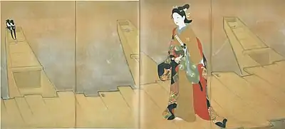 Matsumoto Ichiyō (梥本 一洋, 1893–1952) was a Japanese painter active during the Taishō and Shōwa eras. He was born in Kyoto into a family of yūzen fabric dyers. He graduated from the Kyoto Municipal Special School of Painting in 1915, and then continued his studies with Yamamoto Shunkyo (1871–1933).[1]