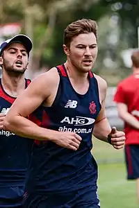 Matt Jones (born 18 October 1987) is a former professional Australian rules footballer who played for the Melbourne Football Club in the Australian Football League (AFL). He was recruited by the club with 53rd selection in the 2012 national draft after playing for South Croydon and Box Hill. He made his debut in round 1, 2013, against Port Adelaide at the Melbourne Cricket Ground.[1] He was delisted at the conclusion of the 2016 season.[2]