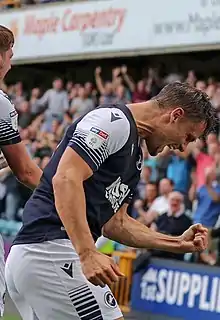 On 1 July 2019, Smith signed for Millwall on a two-year contract for an undisclosed fee.[54] In his first season with the club, Smith scored 14 goals in all competitions, making him the club's top goalscorer in the 2019–20 season. This included a 13-minute hat-trick in a win over Nottingham Forest on 6 March 2020, away at the City Ground.[55]