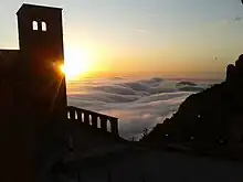 Sivatte's stance versus Francoism remained hostile.[111] When efforts to construct a mausoleum of fallen requetés in Montserrat reached a breakthrough in 1952, Sivatte opposed the project since it was formatted as part of the Francoist propaganda exercise.[112] In return he and other intransigents used to be detained and fined, measures effectively preventing their taking part in the Montserrat aplecs, e.g. in 1954.[113] When in mid-1950s Carlism abandoned its opposition strategy and started to seek some rapprochement with Francoism, the Sivattistas responded with massive criticism. ¿Ha resignado Don Javier su misión en el general Franco? – asked their note of 1955.[114] On the other hand, the deposition of Fal seemed to ease the relationship with Javieristas,[115] especially that in 1956 Don Javier made conciliatory gestures towards Sivatte[116] and that year the two groups agreed to stage common Montserrat feast.[117]