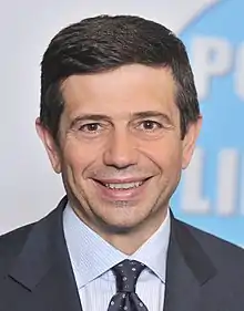 He served as deputy house speaker until 28 April 2013 when he was appointed minister of infrastructure and transport in the Letta cabinet.[4][5] He replaced Corrado Passera in the post.[6] Lupi joined the New Centre-Right formed by Angelino Alfano in November 2013.[7][8] Lupi continued to serve as the minister of infrastructure and transport in the cabinet formed by Matteo Renzi in February 2014.[9]