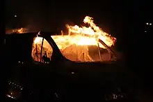 ![]() Second day of the Stockholm Husby riots. The picture shows three cars on fire in the Stockholm suburb of Husby, 20 May 2013 | ||||