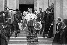 Along with the royal couple, the conspirators killed prime minister Dimitrije Cincar-Marković, minister of the army Milovan Pavlović and general-adjutant Lazar Petrović.[2] The coup had a significant influence on Serbia's relations with other European powers; the Obrenović dynasty had mostly allied with Austria-Hungary, while the Karađorđević dynasty had close ties both with Russia[3] and with France. Each dynasty received ongoing financial support from their powerful foreign sponsors.[4]