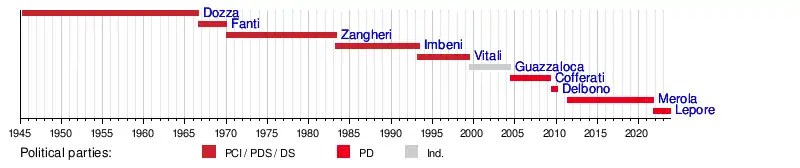 | Mayor of Bologna | Took office | Left office | Party | Coalition | Election | |||
