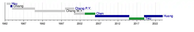 | Hsu Shih-hsien (許世賢) | 1 March 1982 – 1 July 1982 |
