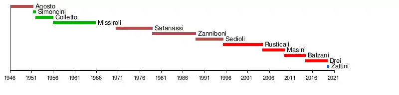 | 12 | Gian Luca Zattini | 11 June 2019 | Incumbent | Independent (centre-right) |