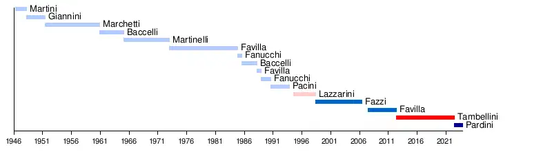 | 3 | Tito Giovanni Marchetti | 30 June 1951 | 26 November 1960 | Christian Democracy |