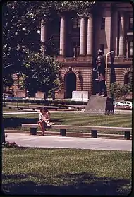 As the week dragged on, the mayor appeared on ABC's Good Morning America and repeated his vow not to sell.[26][27] The city's surrounding suburbs offered little financial support. Only 12 of the 59 agreed to help in a plan led by University Heights mayor Beryl Rotheschild.[28] These suburbs included Bay Village, Bedford, Fairview Park, Garfield Heights, Lakewood, Maple Heights, Newburgh Heights, North Royalton, Orange, Richmond Heights, University Heights, and Westlake.[28] Three of the six banks that held Cleveland's $14 million in notes presented the notes for redemption at the office of the city treasurer at Cleveland City Hall. They stated that they were willing to listen if the city developed "a financial plan satisfactory to all parties involved."[26] Meanwhile, news reporters from around the nation flocked to Cleveland to watch as the situation intensified.