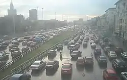 According to TomTom, the manufacturer of navigation devices, in 2015, Moscow moved along the length of traffic jams to fifth place in the world, and the road load index in Moscow decreased to 44% (in 2012 — first place and 57% respectively).[23][24] In 2017, Moscow was excluded from the top 10 cities with the busiest roads according to the TomTom rating. Time losses due to traffic jams decreased from 57 minutes per day in 2012 to 43 minutes per day in 2016. At the same time, the average speed of the traffic increased from 45 km/h in 2010 to 51 km/h in 2016.[25][26]