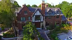 The McBirney Mansion in Tulsa, Oklahoma was the home of James H. McBirney, co-founder of the Bank of Commerce in Tulsa in 1904.[2][lower-alpha 1] He was the original owner of the mansion, built by architect John Long in 1928, and lived there until 1976. The mansion contained 15,900 square feet (1,480 m2) and sits on a 2.91 acres (11,800 m2) lot. The mansion was bought by Donna and Roger Hardesty who lived there for 5 years. Eventually it was bought by a law firm that turned it into a law office. By 2007, was purchased by former American Airlines President George Warde, who had plans to transform it into a boutique hotel. In the meantime, the McBirney Mansion was used as an event center. Warde died in 2012, and events stopped being held at McBirney. By February 2012, the Pauls Corporation, a Denver real estate management company, acquired the mansion as part of the suit's settlement. Tulsa attorney, Gentner Drummond, bought the mansion from Pauls Corp. in 2014, announcing his intention to make it his family's home.[3]