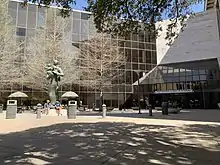 A statue titled "The Family Group" by sculptor, and former UT College of Fine Arts professor, Charles Umlauf sits in the middle of McCombs Plaza at the southern entrance of the GSB Building.[14]