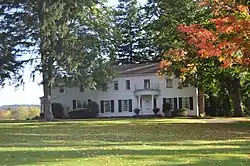 McMahan Homestead, also known as Landmark Acres, is a historic home located in Westfield in Chautauqua County, New York. It is a two-story, five bay wood frame dwelling built in about 1820. The home features a semicircular portico with a denticulated cornice and corinthian columns that was added in the 20th century. On this property is a barn dating from the early 1800s. The home was constructed by Chautauqua County's first settler, Col. James McMahan, who came to Westfield in 1802 from Northumberland County, Pennsylvania. The property is the oldest settled property in Chautauqua county with an original deed from the Holland Land Company for a large portion of Chautauqua County and has the oldest landmark in the county. Chautauqua County celebrated its 100th anniversary, 1902, on the front lawn of the McMahan homestead. In 2002 Chautauqua county celebrated its 200th anniversary also on the property.[2]