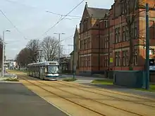 The Meadows is served by several stops of the Nottingham Express Transit system, now that the system's phase two is in operation (25 August 2015). Both line 1, to Beeston and Chilwell, and line 2, to Wilford and Clifton, pass through the Meadows. The stops within the Meadows are:[26]