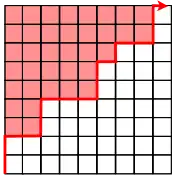 This lower boundary can be visualised like so, where the blue entries are smaller than :