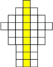 The yellow entries indicate the median of each row. If we mentally re-arrange the rows so that the medians align and ignore the discarded entries outside the boundaries,