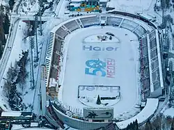 From 29 January to 5 February 2012, the XXXII Bandy World Championship took place at the Medeu. The right to host the WCS was given to Kazakhstan on 28 January 2011 at the congress of the Federation of International Bandy (held in Kazan).[11] Fourteen teams attended the world championship.[12][13] In the final game, the Russian team lost to the Swedish team (4:5). The Kazakh team won the third place by defeating the Finnish team (10:5).