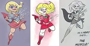 The process of the design of Supergirl. 2012 (left), 2016 (middle), 2019/2018 (right)