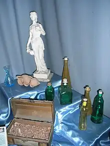 In the second half of the Medicamina Faciei Femineae, Ovid displays his command of the poet's art in taking a practical manual replete with technical details and transforming it into effective verse.[8] Despite the facetious nature of the introduction, the five recipes included in the final 50 lines seem to be genuine, or at least plausible, cosmetic treatments. A representative example is a mixture of barley, vetch, egg, hartshorn, narcissus bulb, gum, Tuscan spelt, and honey.[9] Ovid promises that any woman who uses this concoction on her face "will shine smoother than her own mirror."[10]