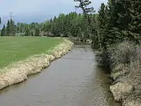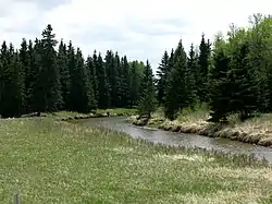 The Medicine River is a medium-sized river in central Alberta. It begins at the outlet of Medicine Lake, north of Rocky Mountain House. The Medicine River initially travels through the Rocky Mountain House Grazing Reserve, a protected area with over 15,000 acres (61 km2) of land set aside for cattle grazing and recreation.[1] The river flows southeast, taking on a number of creeks before passing Eckville. The Medicine River joins the Red Deer River north of Innisfail, downstream of the Dickson Dam, at the Medicine Flats. The Medicine is bridged by Alberta highways 53, 12, 11, and 54.