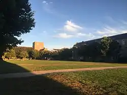 The department of Political Science is in Jenkins Nanovic Hall. These two four-story buildings occupy 185,500 square feet. They were ready for use in 2017.[17] This building is also home to the Department of Sociology. At this site, the sociology faculty and graduate students are brought together on the same floor of the same building for the first time. Nanovic Hall is connected to the new Jenkins Hall, named for Notre Dame's current president, Rev. John I. Jenkins, C.S.C., which will contain the Keough School for Global Affairs and several institutes.[18]