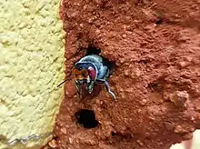 - "Megachile aurifrons – capping the nest". ausemade.com.au. Retrieved 2023-05-07.
