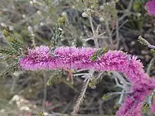 Melaleuca suberosa, commonly known as corky-bark honey-myrtle or corky honeymyrtle, is a shrub in the myrtle family, Myrtaceae, and is endemic to the south of Western Australia. It is a distinctive shrub, recognised by its tiny, crowded leaves, corky bark and pink flowers that appear along lengths of leafless parts of the branches.